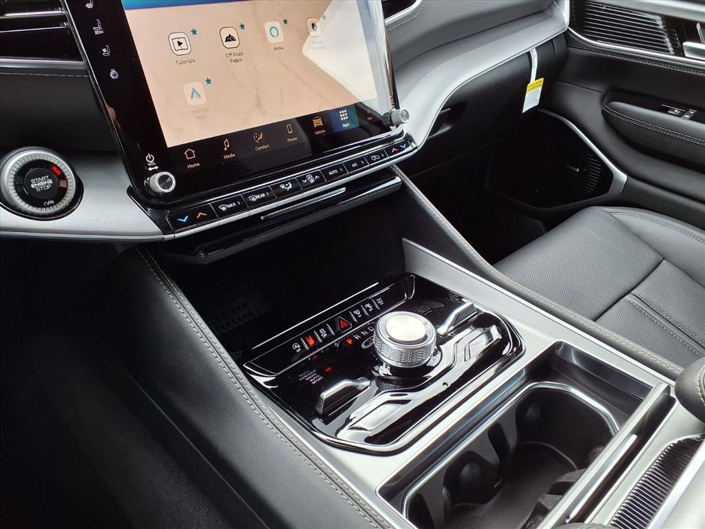 THIS VEHICLE COMES WITH THE FOLLOWING FEATURES AND OPTIONS : Black Appearance Package (118 Mph Maximum Speed Calibration, Black Exterior Accents, Titanium Daylight Opening Upper, Titanium Upper Grille Applique, and Wheels: 22 x 9 Painted Gloss Black), HD Trailer Tow Package (Adjustable Roof Rail Crossbars, Blind Spot with Trailer Detection, Electronic Rear Limited Slip Differential, Removable Rear Tow Hooks, Selec-Speed Control, Trailer Brake Control, Trailer Hitch Zoom, Trailer Light Monitoring, and Vapor Tow Hooks), Limited Reserve Package, MOPAR Interior Protection Package (All-Season Floor Mats and Cargo Tray), Quick Order Package 29D Reserve (19 Speaker McIntosh Audio System, 2nd Row Manual Window Shades, 3 Panel Sunroof, Cargo Cover, Cluster 12 TFT Color Display, Heads-Up Display, Instrument Panel, Interior Rear Facing Camera, Luxury Front and Rear Floor Mats, P and P Park and Unpark Assist with Stop System, Power Deployable Running Boards, Quadra-Lift Air Suspension, Reversible Carpet/Vinyl Cargo Mat, Semi Active Damping, Side Distance Warning, Smartphone as a Key Prep, and Surround View Camera System), 3rd row seats: bench, 4-Wheel Disc Brakes, 9 Speakers, ABS brakes, Air Conditioning, Alloy wheels, AM/FM radio: SiriusXM with 360L, Anti-whiplash front head restraints, Apple CarPlay/Android Auto, Audio memory, Auto Adjust in Reverse Exterior Mirrors, Auto High-beam Headlights, Auto-dimming door mirrors, Auto-Dimming Exterior Driver Mirror, Auto-dimming Rear-View mirror, Auto-leveling suspension, Automatic temperature control, Brake assist, Bumpers: body-color, Compass, Delay-off headlights, Driver door bin, Driver vanity mirror, Driver's Seat Mounted Armrest, Dual front impact airbags, Dual front side impact airbags, Electronic Stability Control, Emergency communication system: Jeep Connect, Exterior Mirrors Approach Lamps, Exterior Mirrors with Memory, Exterior Mirrors with Supplemental Signals, Exterior Parking Camera Rear, Four wheel independent suspension, Front anti-roll bar, Front Bucket Seats, Front Center Armrest w/Storage, Front dual zone A/C, Front fog lights, Front reading lights, Fully automatic headlights, Garage door transmitter, Heated door mirrors, Heated Exterior Mirrors, Heated front seats, Heated rear seats, Heated steering wheel, Illuminated entry, Knee airbag, Leather Trimmed Bucket Seats, Low tire pressure warning, Manufacturer Statement of Origin, Memory seat, MyFlexCare Service Plan, Navigation System, Normal Duty Suspension, Occupant sensing airbag, Outside temperature display, Overhead airbag, Overhead console, Panic alarm, Passenger door bin, Passenger seat mounted armrest, Passenger vanity mirror, Power door mirrors, Power driver seat, Power Liftgate, Power passenger seat, Power steering, Power windows, Radio data system, Radio: Uconnect 5 Nav with 12.0 Display, Rain sensing wipers, Rear air conditioning, Rear anti-roll bar, Rear reading lights, Rear seat center armrest, Rear window defroster, Rear window wiper, Reclining 3rd row seat, Remote keyless entry, Security system, Speed control, Speed-sensing steering, Speed-Sensitive Wipers, Split folding rear seat, Steering wheel memory, Steering wheel mounted audio controls, Tachometer, Telescoping steering wheel, Tilt steering wheel, Traction control, Trip computer, Turn signal indicator mirrors, Variably intermittent wipers, Ventilated front seats, Ventilated rear seats, and Voltmeter.