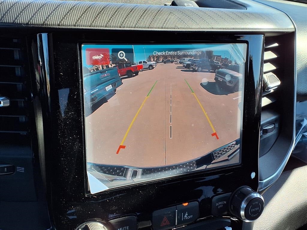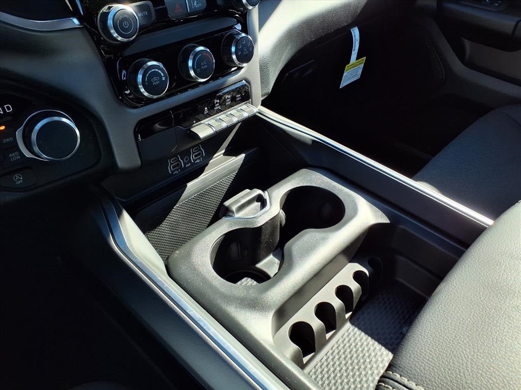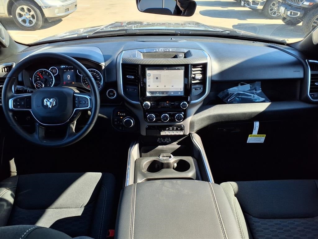 THIS VEHICLE COMES WITH THE FOLLOWING FEATURES AND OPTIONS : Quick Order Package 27R Lone Star (Lone Star Badge), 3 Rear Seat Head Restraints, 4 Way Front Headrests, 4-Wheel Disc Brakes, 48V Belt Starter Generator, 4G LTE Wi-Fi Hot Spot, 6 Speakers, ABS brakes, Air Conditioning, Alloy wheels, AM/FM radio, Anti-Spin Differential Rear Axle, Apple CarPlay, Apple CarPlay/Android Auto, Auto High-beam Headlights, Black Exterior Mirrors, Brake assist, Bucket Seats, Bumpers: chrome, Center Console Parts Module, Cloth Bucket Seats, Compass, Connectivity - US/Canada, Convex Wide-Angle Exterior Mirror Insert, Delay-off headlights, Driver door bin, Dual front impact airbags, Dual front side impact airbags, Electronic Stability Control, Exterior Mirrors with Heating Element, Front anti-roll bar, Front Bucket Seats, Front Center Armrest w/Storage, Front fog lights, Front License Plate Bracket, Front reading lights, Front wheel independent suspension, Full Length Floor Console, Fully automatic headlights, Global Telematics Box Module, Google Android Auto, GPS Antenna Input, Heated door mirrors, Illuminated entry, Integrated Center Stack Radio, Integrated Voice Command with Bluetooth®, Low tire pressure warning, Manual Adjust 4-Way Driver Seat, Manual Adjust 4-Way Front Passenger Seat, Manual Folding Exterior Mirrors, Manufacturer's Statement of Origin, MOPAR Front and Rear Rubber Floor Mats, MyFlexCare Service Plan, Occupant sensing airbag, Outside temperature display, Overhead airbag, Overhead console, Panic alarm, ParkView Rear Back-Up Camera, Passenger door bin, Passenger vanity mirror, Power door mirrors, Power steering, Power windows, Radio data system, Radio: Uconnect 5 W with 8.4 Display, RAM Grille Badge - Chrome, Rear anti-roll bar, Rear step bumper, Remote keyless entry, Speed control, Supplier Part Tracking (J-1), Tachometer, Telescoping steering wheel, Tilt steering wheel, Traction control, Trip computer, USB Host Flip, Variably intermittent wipers, Voltmeter, and Wheels: 18 x 8 Cast-Aluminum Painted.