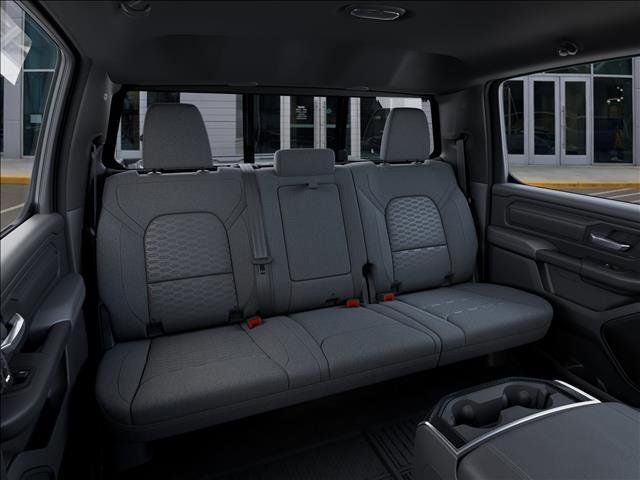 THIS VEHICLE COMES WITH THE FOLLOWING FEATURES AND OPTIONS : Big Horn Level 1 Equipment Group (115V Auxiliary Power Outlet, 2nd Row in Floor Storage Bins, 3 Rear Seat Head Restraints, 4 Way Front Headrests, 400W Inverter, Auto Power-Folding Mirrors, Auto-Dimming Exterior Driver Mirror, Auto-Dimming Rear-View Mirror, Black Exterior Mirrors, Black Premium Power Mirrors, Body Color Fender Flares, Bucket Seats, Center Console Parts Module, Convex Wide-Angle Exterior Mirror Insert, Deluxe Cloth Bucket Seats, Exterior Mirrors Courtesy Lamps, Exterior Mirrors with Heating Element, Exterior Mirrors with Supplemental Signals, Front Seat Back Map Pockets, Full Length Floor Console, Glove Box Lamp, Heated Front Seats, Heated Steering Wheel, Leather Wrapped Steering Wheel, Manual Adjust 4-Way Front Passenger Seat, Power 2-Way Driver Lumbar Adjust, Power Adjust 8-Way Driver Seat, Power Adjustable Pedals, Rear 60/40 Folding Seat, Rear Center Armrest, Rear Dome with on/Off Switch Lamp, Rear Power Sliding Window, Rear Window Defroster, SiriusXM Radio Service, SiriusXM Satellite Radio, Steering Wheel Mounted Audio Controls, Sun Visors with Illuminated Vanity Mirrors, and Universal Garage Door Opener), Quick Order Package 27R Lone Star (Lone Star Badge), Sport Appearance Package (Black Interior Accents, Body Color Door Handles, Body Color Front Bumper, Body Color Rear Bumper with Step Pads, Body Color Tailgate Handle, Grille Surround 1 Body Color Texture 1 Black, and RAM Grille Badge - Chrome), 4-Wheel Disc Brakes, 48V Belt Starter Generator, 4G LTE Wi-Fi Hot Spot, 6 Speakers, ABS brakes, Air Conditioning, Alloy wheels, AM/FM radio, Anti-Spin Differential Rear Axle, Apple CarPlay, Apple CarPlay/Android Auto, Auto High-beam Headlights, Brake assist, Bumpers: chrome, Cloth Bucket Seats, Compass, Connectivity - US/Canada, Delay-off headlights, Driver door bin, Dual front impact airbags, Dual front side impact airbags, Electronic Stability Control, Front anti-roll bar, Front Bucket Seats, Front Center Armrest w/Storage, Front fog lights, Front License Plate Bracket, Front reading lights, Front wheel independent suspension, Fully automatic headlights, Global Telematics Box Module, Google Android Auto, GPS Antenna Input, Heated door mirrors, Illuminated entry, Integrated Center Stack Radio, Integrated Voice Command with Bluetooth®, Low tire pressure warning, Manual Adjust 4-Way Driver Seat, Manual Folding Exterior Mirrors, Manufacturer's Statement of Origin, MOPAR Front and Rear Rubber Floor Mats, MyFlexCare Service Plan, Occupant sensing airbag, Outside temperature display, Overhead airbag, Overhead console, Panic alarm, ParkView Rear Back-Up Camera, Passenger door bin, Passenger vanity mirror, Power door mirrors, Power steering, Power windows, Radio data system, Radio: Uconnect 5 W with 8.4 Display, Rear anti-roll bar, Rear step bumper, Remote keyless entry, Speed control, Supplier Part Tracking (J-1), Tachometer, Telescoping steering wheel, Tilt steering wheel, Traction control, Trip computer, USB Host Flip, Variably intermittent wipers, Voltmeter, and Wheels: 18 x 8 Cast-Aluminum Painted.