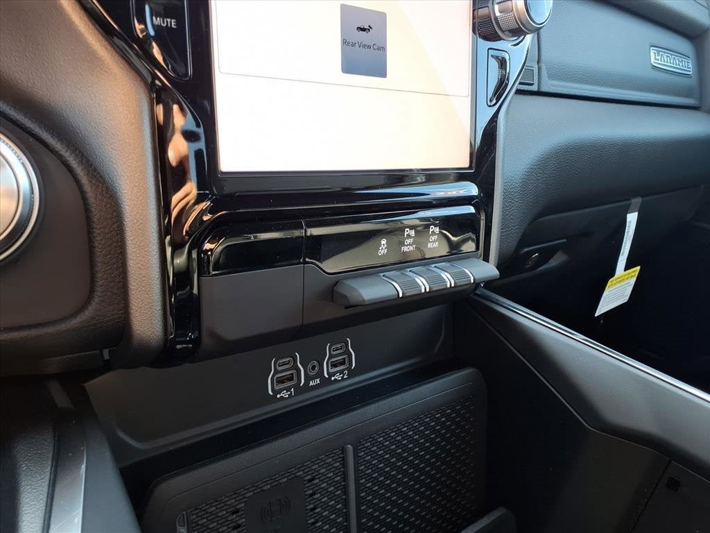 THIS VEHICLE COMES WITH THE FOLLOWING FEATURES AND OPTIONS : Laramie Level 1 Equipment Group (Rain Sensitive Windshield Wipers and Remote Tailgate Release), Quick Order Package 21H Laramie, 10 Speakers, 3.21 Rear Axle Ratio, 4-Wheel Disc Brakes, 4G LTE Wi-Fi Hot Spot, ABS brakes, Adjustable pedals, Air Conditioning, Alloy wheels, AM/FM radio: SiriusXM with 360L, Anti-Spin Differential Rear Axle, Apple CarPlay/Android Auto, Audio memory, Auto High-beam Headlights, Auto Power-Folding Mirrors, Auto-dimming door mirrors, Auto-Dimming Exterior Driver Mirror, Auto-dimming Rear-View mirror, Automatic temperature control, Brake assist, Bumpers: chrome, Chrome Exterior Mirrors, Compass, Connected Travel and Traffic Services, Connectivity - US/Canada, Convex Wide-Angle Exterior Mirror Insert, Delay-off headlights, Driver door bin, Driver vanity mirror, Dual front impact airbags, Dual front side impact airbags, Electronic Stability Control, Exterior Mirrors Courtesy Lamps, Exterior Mirrors with Heating Element, Exterior Mirrors with Memory, Exterior Mirrors with Supplemental Signals, Exterior Parking Camera Rear, Front anti-roll bar, Front Bucket Seats, Front Center Armrest w/Storage, Front dual zone A/C, Front fog lights, Front License Plate Bracket, Front reading lights, Front wheel independent suspension, Fully automatic headlights, Garage door transmitter, GPS Navigation, Heated door mirrors, Heated front seats, Heated rear seats, Heated steering wheel, Illuminated entry, Integrated Center Stack Radio, Integrated Voice Command with Bluetooth®, Leather steering wheel, Leather Trimmed Bucket Seats, Low tire pressure warning, Memory seat, MOPAR Front and Rear Rubber Floor Mats, MyFlexCare Service Plan, Navigation System, Occupant sensing airbag, Outside temperature display, Overhead airbag, Overhead console, Panic alarm, Passenger door bin, Passenger vanity mirror, Pedal memory, Power door mirrors, Power driver seat, Power passenger seat, Power steering, Power windows, Radio data system, Radio: Uconnect 5 Navigation with 12.0 Display, RAM Grille Badge - Chrome, Rear anti-roll bar, Rear reading lights, Rear seat center armrest, Rear step bumper, Remote keyless entry, Security system, SiriusXM Radio Service, SiriusXM with 360L, Speed control, Split folding rear seat, Steering wheel mounted audio controls, Tachometer, Telescoping steering wheel, Tilt steering wheel, Traction control, Trip computer, Turn signal indicator mirrors, USB Host Flip, Variably intermittent wipers, Ventilated front seats, Voltmeter, and Wheels: 20 x 9 Premium Paint/Polish. Price includes: $1000 - 2026 National Bonus Cash . Exp. 03/02/2026 $1000 - 2026 Southwest BC State of Texas Regional Bonus Cash . Exp. 03/02/2026 $3500 - 2026 National Retail Consumer Cash . Exp. 03/02/2026