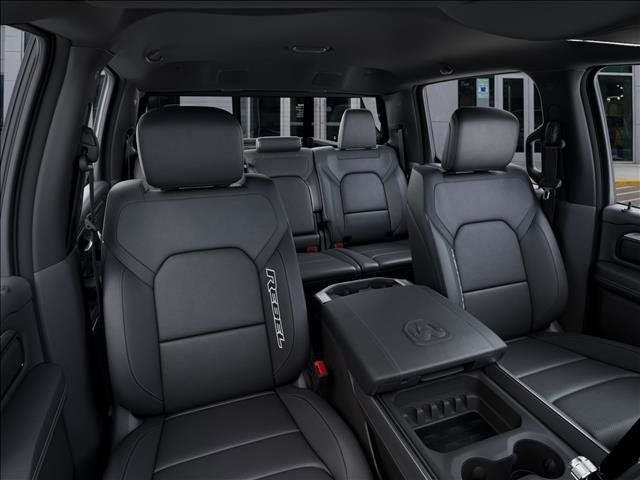 THIS VEHICLE COMES WITH THE FOLLOWING FEATURES AND OPTIONS : Bed Utility Group (Exterior 115V AC Outlet, MOPAR 4 Adjustable Cargo Tie-Down Hooks, and MOPAR Spray in Bedliner), Quick Order Package 21W Rebel, Rebel Level 2 Equipment Group (115V Auxiliary Rear Power Outlet, 14.4 Touchscreen Display, 2-Door Passive Entry, Front Door Locks, 4G LTE Wi-Fi Hot Spot, Accent Color Door Handles, Accent Color Premium Power Mirrors, Accent Color Tailgate Handle, Apple CarPlay, Auto Power-Folding Mirrors, Auto-Dimming Exterior Driver Mirror, Black Painted Exterior Mirrors Caps, Connected Travel and Traffic Services, Connectivity - US/Canada, Convex Wide-Angle Exterior Mirror Insert, Disassociated Touchscreen Display, Driver Seat Memory, Dual Wireless Charging Pad, Exterior Mirrors Approach Lamps, Exterior Mirrors Courtesy Lamps, Exterior Mirrors with Heating Element, Exterior Mirrors with Memory, Exterior Mirrors with Supplemental Signals, Front Passenger Interactive Display, Global Telematics Box Module, Google Android Auto, GPS Antenna Input, GPS Navigation, Harman/Kardon 19 Speaker Premium Sound, HD Radio, Heated Second Row Seats, Integrated Center Stack Radio, Integrated Voice Command with Bluetooth®, Media Hub with 2 Charge Only USBs, Off-Road Information Pages, Power 2-Way Passenger Lumbar Adjust, Power Adjust 8-Way Front Passenger Seat, Power Adjustable Pedals with Memory, Power Tailgate, Proximity Approach/Departure Lamps, Radio: Uconnect 5 Nav with 14.4 Display, Radio/Driver Seat/Mirrors/Pedals Memory, Rain Sensitive Windshield Wipers, Rear Window Defroster, Security Alarm, SiriusXM Radio Service, SiriusXM with 360L, Smartphone as a Key Capable, and USB Host Flip), 10 Speakers, 3.92 Rear Axle Ratio, 4 Way Front Headrests, 4-Wheel Disc Brakes, ABS brakes, Active Noise Control System, Air Conditioning, Alloy wheels, AM/FM radio: SiriusXM with 360L, Apple CarPlay/Android Auto, Auto High-beam Headlights, Auto-dimming Rear-View mirror, Automatic temperature control, Black Exterior Mirrors, Brake assist, Bucket Seats, Cloth/Vinyl Bucket Seats, Compass, Delay-off headlights, Driver door bin, Driver vanity mirror, Dual front impact airbags, Dual front side impact airbags, Electronic Stability Control, Front anti-roll bar, Front Bucket Seats, Front Center Armrest w/Storage, Front dual zone A/C, Front fog lights, Front License Plate Bracket, Front reading lights, Front Seat Back Map Pockets, Front wheel independent suspension, Full Length Upgraded Floor Console, Fully automatic headlights, Garage door transmitter, Heated door mirrors, Heated Front Seats, Heated front seats, Heated Steering Wheel, Heated steering wheel, Illuminated entry, Leather steering wheel, Low tire pressure warning, Manual Folding Exterior Mirrors, Mopar Black Tubular Side Steps, MyFlexCare Service Plan, Navigation System, Occupant sensing airbag, Outside temperature display, Overhead airbag, Overhead console, Panic alarm, ParkView Rear Back-Up Camera, Passenger door bin, Passenger vanity mirror, Power 2-Way Driver Lumbar Adjust, Power Adjust 8-Way Driver Seat, Power door mirrors, Power driver seat, Power steering, Power windows, Radio data system, Radio: Uconnect 5 Navigation with 12.0 Display, Rear 60/40 Folding Seat, Rear anti-roll bar, Rear seat center armrest, Rear step bumper, Remote keyless entry, Speed control, Split folding rear seat, Steering wheel mounted audio controls, Tachometer, Telescoping steering wheel, Tilt steering wheel, Traction control, Trailer Brake Control, Trip computer, Variably intermittent wipers, Voltmeter, and Wheels: 18 x 8.0 Painted Mid-Gloss Black.