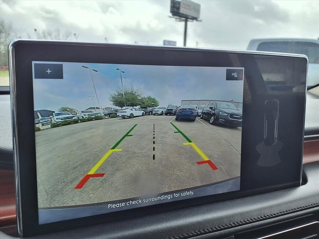 THIS VEHICLE IS EQUIPPED WITH THE FOLLOWING FEATURES AND OPTIONS :Equipment Group 200A, Black Metallic, 10 Speakers, 3.80 Axle Ratio, 4-Wheel Disc Brakes, ABS brakes, Air Conditioning, Alexa Built-In, Alloy wheels, AM/FM radio: SiriusXM with 360L, Auto High-beam Headlights, Auto tilt-away steering wheel, Auto-dimming door mirrors, Auto-dimming Rear-View mirror, Automatic temperature control, Brake assist, Bumpers: body-color, Compass, Delay-off headlights, Driver door bin, Driver vanity mirror, Dual front impact airbags, Dual front side impact airbags, Electronic Stability Control, Emergency communication system: 911 Assist, Four wheel independent suspension, Front anti-roll bar, Front Bucket Seats, Front Center Armrest w/Storage, Front dual zone A/C, Front License Plate Bracket, Front reading lights, Fully automatic headlights, Garage door transmitter: HomeLink, Heated door mirrors, Heated front seats, Heated rear seats, Heated steering wheel, Illuminated entry, Knee airbag, Leather steering wheel, Low tire pressure warning, Memory seat, Navigation System, Occupant sensing airbag, Outside temperature display, Overhead airbag, Overhead console, Panic alarm, Passenger door bin, Passenger vanity mirror, Power door mirrors, Power driver seat, Power Liftgate, Power moonroof: Panoramic Vista Roof, Power passenger seat, Power steering, Power windows, Prem Lthr-Trimmed Heated/Ventilated Captain Seats, Radio data system, Radio: AM/FM/HD Audio System, Rain sensing wipers, Rear anti-roll bar, Rear reading lights, Rear seat center armrest, Rear window defroster, Rear window wiper, Remote keyless entry, Security system, Speed control, Speed-sensing steering, Speed-Sensitive Wipers, Split folding rear seat, Spoiler, Steering wheel memory, Steering wheel mounted A/C controls, Steering wheel mounted audio controls, SYNC 4 w/Enhanced Voice Recognition, Tachometer, Telescoping steering wheel, Tilt steering wheel, Traction control, Trip computer, Turn signal indicator mirrors, Variably intermittent wipers, Ventilated front seats, and Wheels: 18 Premium Painted Bright Machined Alum.