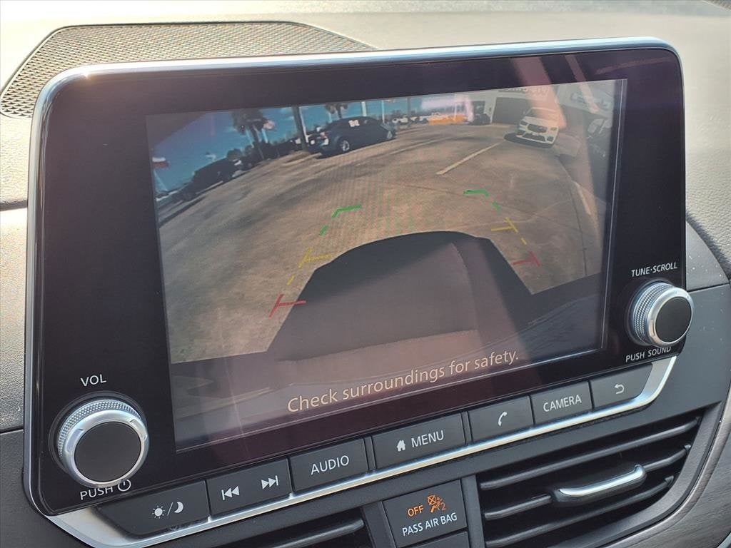 THIS VEHICLE IS EQUIPPED WITH THE FOLLOWING FEATURES AND OPTIONS :Gun Metallic, 17 Alloy Wheels, 4-Wheel Disc Brakes, 6 Speakers, ABS brakes, Air Conditioning, Alloy wheels, AM/FM radio: SiriusXM, Auto High-beam Headlights, Blind Spot Warning, Brake assist, Bumpers: body-color, Cloth Seat Trim, Delay-off headlights, Driver door bin, Driver vanity mirror, Dual front impact airbags, Dual front side impact airbags, Electronic Stability Control, Floor Mats/Trunk Mat/Hideaway Net, Four wheel independent suspension, Front anti-roll bar, Front Bucket Seats, Front Center Armrest, Front reading lights, Fully automatic headlights, Illuminated entry, Knee airbag, Low tire pressure warning, NissanConnect featuring Apple CarPlay, Occupant sensing airbag, Outside temperature display, Overhead airbag, Overhead console, Panic alarm, Passenger door bin, Passenger vanity mirror, Power door mirrors, Power driver seat, Power steering, Power windows, Radio data system, Radio: AM/FM Audio System, Rear anti-roll bar, Rear Parking Sensors, Rear reading lights, Rear seat center armrest, Rear side impact airbag, Rear window defroster, Remote keyless entry, Security system, Speed control, Speed-sensing steering, Speed-Sensitive Wipers, Split folding rear seat, Steering wheel mounted audio controls, Tachometer, Telescoping steering wheel, Tilt steering wheel, Traction control, Trip computer, and Variably intermittent wipers. 27/39 City/Highway MPG