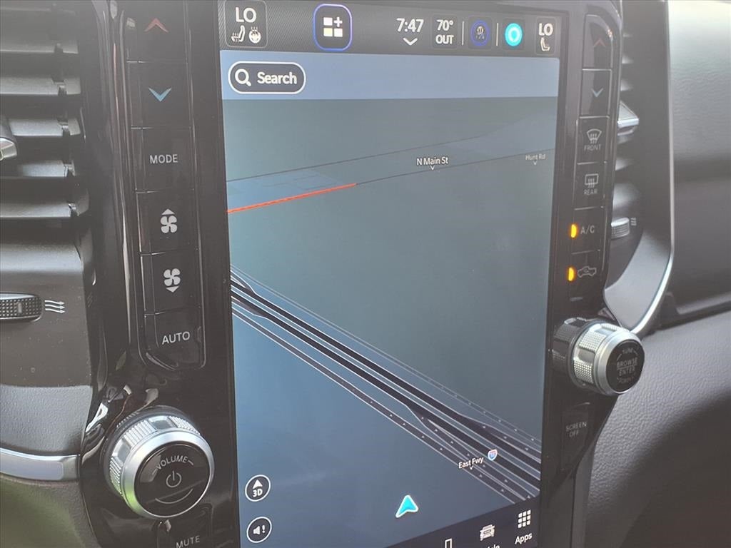 THIS VEHICLE IS EQUIPPED WITH THE FOLLOWING FEATURES AND OPTIONS :Big Horn Level B Equipment Group (115V Auxiliary Power Outlet, 2nd Row In Floor Storage Bins, 400W Inverter, 4G LTE Wi-Fi Hot Spot, 9 Amplified Speakers w/Subwoofer, Air Conditioning ATC w/Dual Zone Control, All R1 High Radios, All Radio Equipped Vehicles, Apple CarPlay, Auto-Dimming Exterior Driver Mirror, Auto-Dimming Rear-View Mirror, Black Premium Power Mirrors, Class IV Receiver Hitch, Cluster 7.0 TFT Color Display, Connected Travel & Traffic Services, Connectivity - US/Canada, Convex Wide-Angle Exterior Mirror Insert, Exterior Mirrors Courtesy Lamps, Exterior Mirrors w/Heating Element, Exterior Mirrors w/Supplemental Signals, For Details, Visit DriveUconnect.com, For More Info, Call 800-643-2112, Front Fog Lamps, Global Telematics Box Module (TBM), Glove Box Lamp, Google Android Auto, GPS Navigation, HD Radio, Heated Front Seats, Heated Steering Wheel, Integrated Voice Command w/Bluetooth®, LED Footwell Lighting, Media Hub w/2 Charge Only USBs, ParkSense Front/Rear Park Assist w/Stop, Power 2-Way Driver Lumbar Adjust, Power 8-Way Driver Seat, Power Adjustable Pedals, Power-Folding Mirrors, Radio: Uconnect 5 Nav w/12.0 Display, Rear Dome w/On/Off Switch Lamp, Rear Power Sliding Window, Rear Window Defroster, Remote Start System, Security Alarm, SiriusXM Radio Service, SiriusXM Satellite Radio, SiriusXM w/360L, Sun Visors w/Illuminated Vanity Mirrors, Universal Garage Door Opener, and USB Host Flip), Quick Order Package 27Z Big Horn (Big Horn Badge), 3 Rear Seat Head Restraints, 3.21 Rear Axle Ratio, 4 Way Front Headrests, 4-Wheel Disc Brakes, 48V Belt Starter Generator, 6 Speakers, ABS brakes, Air Conditioning, Alloy wheels, AM/FM radio, Brake assist, Bumpers: chrome, Cloth Bench Seat, Compass, Delay-off headlights, Driver door bin, Dual front impact airbags, Dual front side impact airbags, Electronic Stability Control, Emergency communication system: RAM Connect, Front anti-roll bar, Front Center Armrest w/Storage, Front License Plate Bracket, Front reading lights, Front Seat Back Map Pockets, Front wheel independent suspension, Fully automatic headlights, Heated door mirrors, Illuminated entry, Leather steering wheel, Low tire pressure warning, Manufacturer's Statement of Origin, Occupant sensing airbag, Outside temperature display, Overhead airbag, Overhead console, Panic alarm, ParkView Rear Back-Up Camera, Passenger door bin, Passenger vanity mirror, Power door mirrors, Power steering, Power windows, Radio data system, Radio: Uconnect 3 w/5 Display, RAM Grille Badge - Chrome, Rear 60/40 Folding Seat, Rear anti-roll bar, Rear seat center armrest, Rear step bumper, Remote keyless entry, Speed control, Split folding rear seat, Steering wheel mounted audio controls, Tachometer, Telescoping steering wheel, Tilt steering wheel, Traction control, Trip computer, Variably intermittent wipers, Voltmeter, and Wheels: 18 x 8 Cast-Aluminum PainteD.
