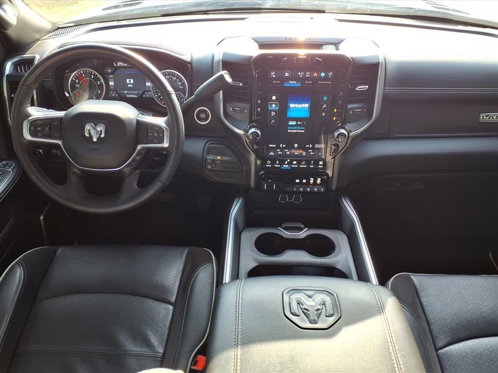 THIS VEHICLE IS EQUIPPED WITH THE FOLLOWING FEATURES AND OPTIONS :Laramie Level 1 Equipment Group (12 Touchscreen Display, 4G LTE Wi-Fi Hot Spot, Alexa Built-In, Apple CarPlay, Auto Adjust In Reverse Exterior Mirrors, Auto Dim Exterior Mirror, Auto High Beam Headlamp Control, Auto Power-Folding Mirrors, Auto-Dimming Exterior Passenger Mirror, Blind Spot & Cross Path Detection, Center Hub, Chrome Exterior Mirrors, Connected Travel & Traffic Services, Connectivity - US/Canada, Disassociated Touchscreen Display, Exterior Mirrors Courtesy Lamps, Exterior Mirrors w/Heating Element, Exterior Mirrors w/Memory, Exterior Mirrors w/Supplemental Signals, Foam Bottle Insert (Door Trim Panel), For Details, Visit DriveUconnect.com, For More Info, Call 800-643-2112, Forward & Reverse Utility Lights, Front LED Fog Lamps, Global Telematics Box Module (TBM), Google Android Auto, GPS Antenna Input, GPS Navigation, HD Radio, Integrated Voice Command w/Bluetooth®, LED Reflector Headlamps, LED Tail Lamps, Mirror Power Heat Fold Memory Tele, Mirror Running Lights, Off-Road Information Pages, ParkSense Front/Rear Park Assist System, Power Adjust Mirrors, Power Adjustable Convex Aux Mirrors, Power Adjustable Pedals w/Memory, Power Telescoping Mirrors, Radio: Uconnect 5 Nav w/12.0 Display, Rain Sensitive Windshield Wipers, Rear Power Sliding Window, Rear Window Defroster, Remote Tailgate Release, Selectable Tire Fill Alert, SiriusXM Radio Service, SiriusXM w/360L, Trailer Tow Pages, and Wheels: 18 x 8.0 Polished Aluminum), Night Edition (Black Exterior Truck Badging, Black Headlamp Bezels, Black Interior Accents, Black RAM Head Tailgate Badge, Black Tail Lamp Bezels, Black Wheel Center Hub, Body Color Grille Surround, Gloss Black Grille Billets/Accents, Sport Performance Hood, and Wheels: 20 x 8.0 Black Painted Aluminum), Protection Group (Tow Hooks), Quick Order Package 2HH Laramie, Towing Technology Group (Center Stop Lamp w/Cargo View Camera, Surround View Camera System, and Trailer Reverse Guidance), 10 Speakers, 115V Auxiliary Rear Power Outlet, 2 Way Rear Headrest Seat, 220 Amp Alternator, 3.73 Axle Ratio, 4 Way Front Headrests, 4-Wheel Disc Brakes, 5th Wheel/Gooseneck Towing Prep Group, ABS brakes, Active Noise Control System, Adaptive Steering System, Air Conditioning, Alloy wheels, AM/FM radio: SiriusXM with 360L, Anti-Spin Differential Rear Axle, Apple CarPlay/Android Auto, Automatic temperature control, Brake assist, Bumpers: body-color, Clearance Lamps, Compass, Delay-off headlights, Driver door bin, Driver vanity mirror, Dual front impact airbags, Dual front side impact airbags, Electronic Stability Control, Electronically Controlled Throttle, Front anti-roll bar, Front Center Armrest w/Storage, Front dual zone A/C, Front License Plate Bracket, Front reading lights, Front Seat Back Map Pockets, Fully automatic headlights, Garage door transmitter, Heated door mirrors, Heated Front Seats, Heated front seats, Heated Steering Wheel, Heated steering wheel, High Back Seats, Illuminated entry, Leather steering wheel, Leather Trim 40/20/40 Bench Seat, Low tire pressure warning, MOPAR Spray In Bedliner, Navigation System, Occupant sensing airbag, Outside temperature display, Overhead airbag, Overhead console, Panic alarm, ParkView Rear Back-Up Camera, Passenger door bin, Passenger vanity mirror, Power 2-Way Driver Lumbar Adjust, Power 2-Way Passenger Lumbar Adjust, Power Adjust 8-Way Driver Seat, Power Adjust 8-Way Front Passenger Seat, Power door mirrors, Power driver seat, Power passenger seat, Power steering, Power windows, Radio data system, Rear 60/40 Folding Seat, Rear anti-roll bar, Rear reading lights, Rear seat center armrest, Rear step bumper, Remote keyless entry, Security system, Speed control, Split folding rear seat, Steering wheel mounted audio controls, Tachometer, Tilt steering wheel, Tip Start,