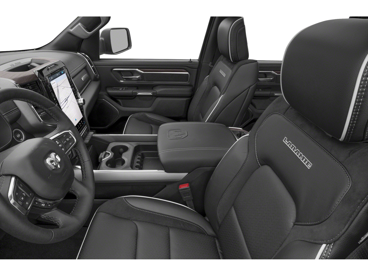 THIS VEHICLE IS EQUIPPED WITH THE FOLLOWING FEATURES AND OPTIONS :Quick Order Package 21H Laramie, 10 Speakers, 3 Rear Seat Head Restraints, 3.55 Rear Axle Ratio, 4 Way Front Headrests, 4-Wheel Disc Brakes, 4G LTE Wi-Fi Hot Spot, ABS brakes, Air Conditioning, Alloy wheels, AM/FM radio: SiriusXM with 360L, Apple CarPlay, Apple CarPlay/Android Auto, Audio memory, Auto High-beam Headlights, Auto Power-Folding Mirrors, Auto-dimming door mirrors, Auto-Dimming Exterior Driver Mirror, Auto-dimming Rear-View mirror, Automatic temperature control, Brake assist, Bumpers: chrome, Chrome Exterior Mirrors, Compass, Connected Travel & Traffic Services, Connectivity - US/Canada, Convex Wide-Angle Exterior Mirror Insert, Delay-off headlights, Driver door bin, Driver Seat Memory, Driver vanity mirror, Dual front impact airbags, Dual front side impact airbags, Electronic Stability Control, Exterior Mirrors Courtesy Lamps, Exterior Mirrors w/Heating Element, Exterior Mirrors w/Memory, Exterior Mirrors w/Supplemental Signals, Front anti-roll bar, Front Center Armrest w/Storage, Front dual zone A/C, Front fog lights, Front License Plate Bracket, Front reading lights, Front Seat Back Map Pockets, Front wheel independent suspension, Fully automatic headlights, Garage door transmitter, Google Android Auto, GPS Antenna Input, GPS Navigation, HD Radio, Heated door mirrors, Heated Front Seats, Heated front seats, Heated rear seats, Heated Steering Wheel, Heated steering wheel, Illuminated entry, Integrated Voice Command w/Bluetooth®, Leather steering wheel, Leather Trim 40/20/40 Bench Seat, Low tire pressure warning, Manufacturer's Statement of Origin, Memory seat, Navigation System, Occupant sensing airbag, Outside temperature display, Overhead airbag, Overhead console, Panic alarm, ParkView Rear Back-Up Camera, Passenger door bin, Passenger vanity mirror, Power 2-Way Driver Lumbar Adjust, Power 2-Way Passenger Lumbar Adjust, Power Adjust 8-Way Front Passenger Seat, Power door mirrors, Power driver seat, Power passenger seat, Power steering, Power windows, Radio data system, Radio: Uconnect 5 Nav w/12.0 Display, RAM Grille Badge - Chrome, Rear anti-roll bar, Rear reading lights, Rear seat center armrest, Rear step bumper, Remote keyless entry, Security system, SiriusXM w/360L, Speed control, Split folding rear seat, Steering wheel mounted audio controls, Tachometer, Telescoping steering wheel, Tilt steering wheel, Traction control, Trip computer, Turn signal indicator mirrors, USB Host Flip, Variably intermittent wipers, Ventilated Front Seats, Ventilated front seats, Voltmeter, and Wheels: 20 x 9 Premium Paint/Polish. Recent Arrival!